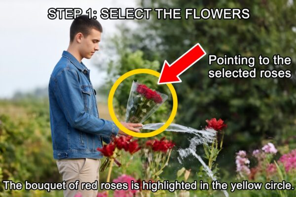 - Add flowers and water to a pot.