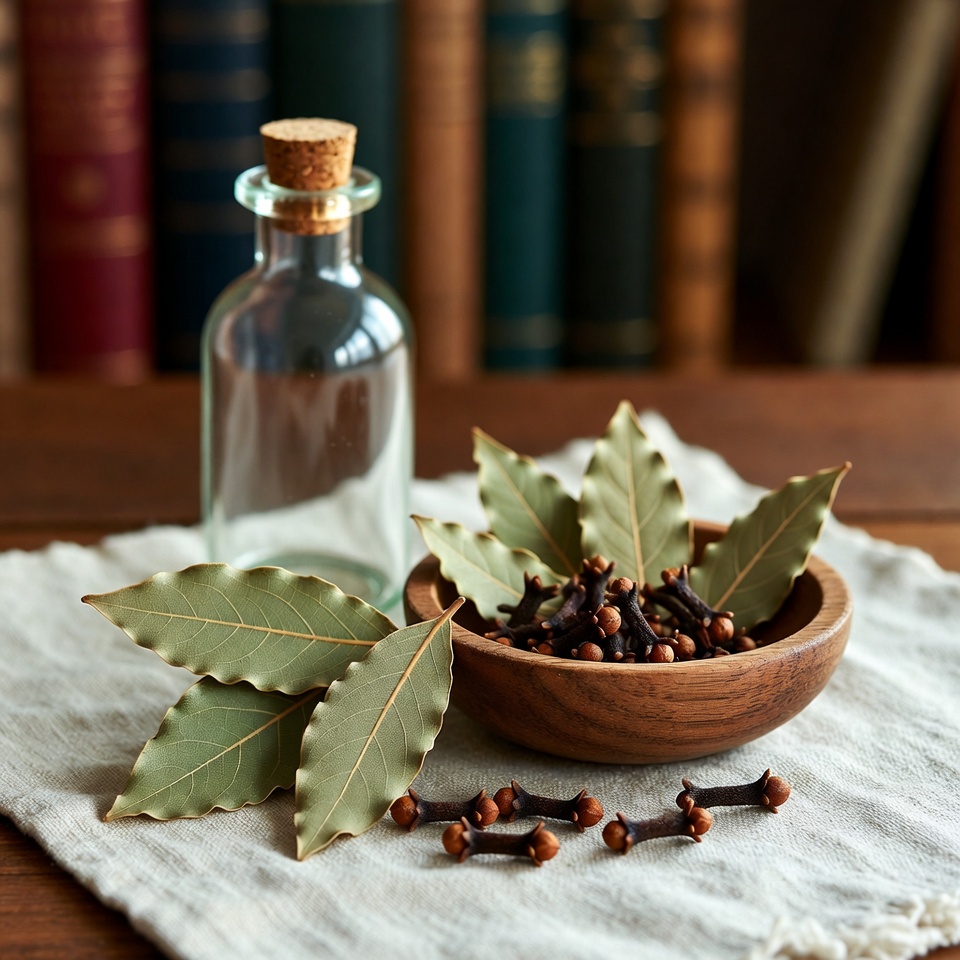 Place the bay leaves and cloves in the mortar. Crush and grind them thoroughly with the pestle until you get a fine, uniform powder.