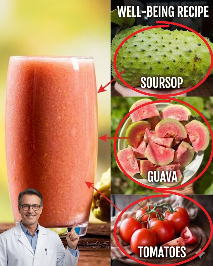 - Add the soursop pulp, guava, tomato, and cold water to a blender.